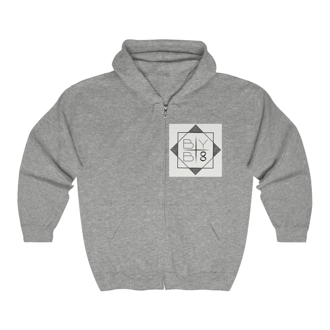 BYB 8 - White Logo Zip Hoodie (with background)